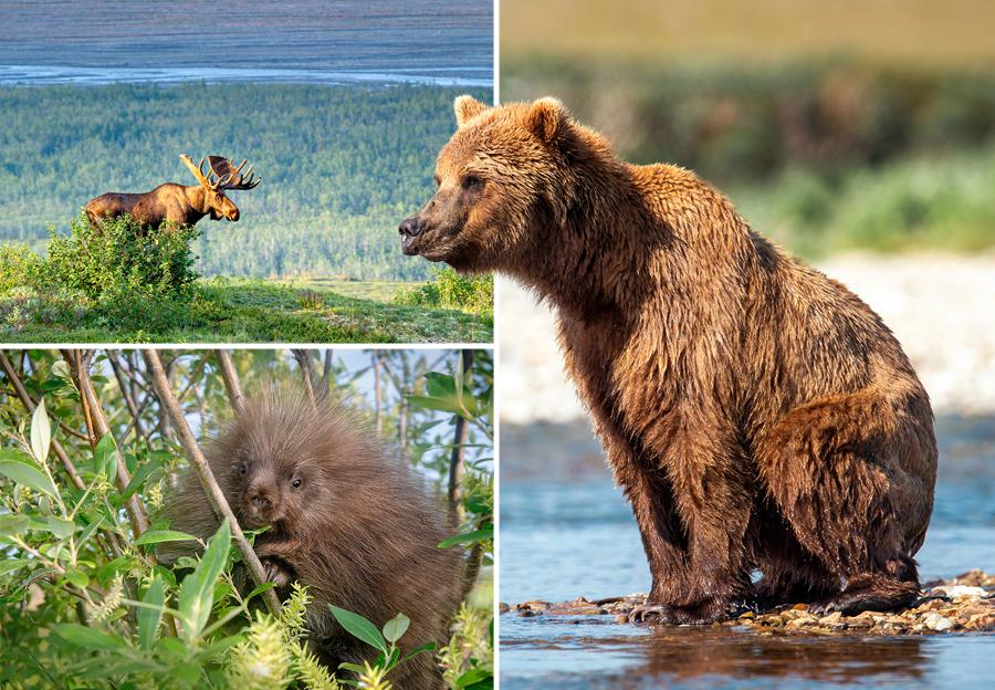 Der häufigste Bär Alaskas ist der bekannte Grizzly. Unter anderem auf der Insel Katmai beheimatet, bringt er gut und gerne über 500 Kilogramm auf die Waage. Damit ist er aber nicht die grösste Unterart des Braunbären (Ursus arctos). Auf der vor Katmai südöstlich vorgelagerten Insel Kodiak lebt der mit einem Gewicht von bis zu 750 Kilogramm schwere Kodiakbär (Er ist der grösste der heute lebenden Braunbären, noch grösser als der Kamtschatkabär).