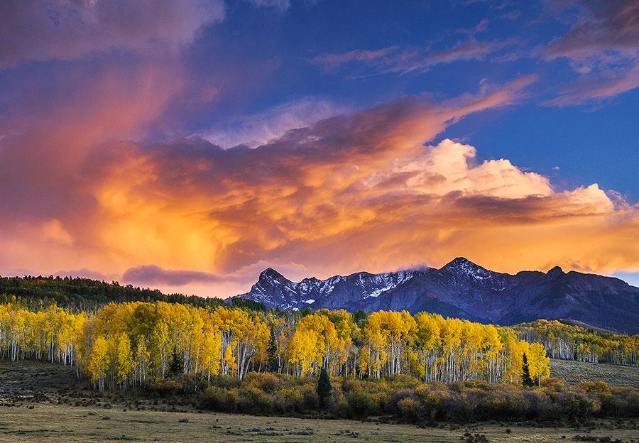 Die goldene Jahreszeit des so genannten Indian Summer im höchstgelegenen US-Bundesstaat gilt als Geheimtipp unter Naturliebhabern und Landschaftsfotografen. Die Rocky Mountains in Colorado zählen im Herbst wohl zu den attraktivsten Reisezielen der USA. Denn jedes Jahr von Mitte September bis Anfang Oktober leuchten die Espenwälder zwischen dem Rocky Mountain National Park im Norden und den Ausläufern des San Juan Gebirges im Südwesten in den verschiedensten Gelb-, Rot- und Brauntönen. Dieses Naturspektakel faszinierte mich schon viele Jahre, auch wenn ich es nur von Bildern her kannte. Und so träumte ich davon, diesen weitläufigen und wilden Staat einmal besuchen zu dürfen. 2010 ergab sich dann die Gelegenheit, den Indian Summer mit eigenen Augen zu sehen und zu fotografieren – und ich wurde nicht enttäuscht!