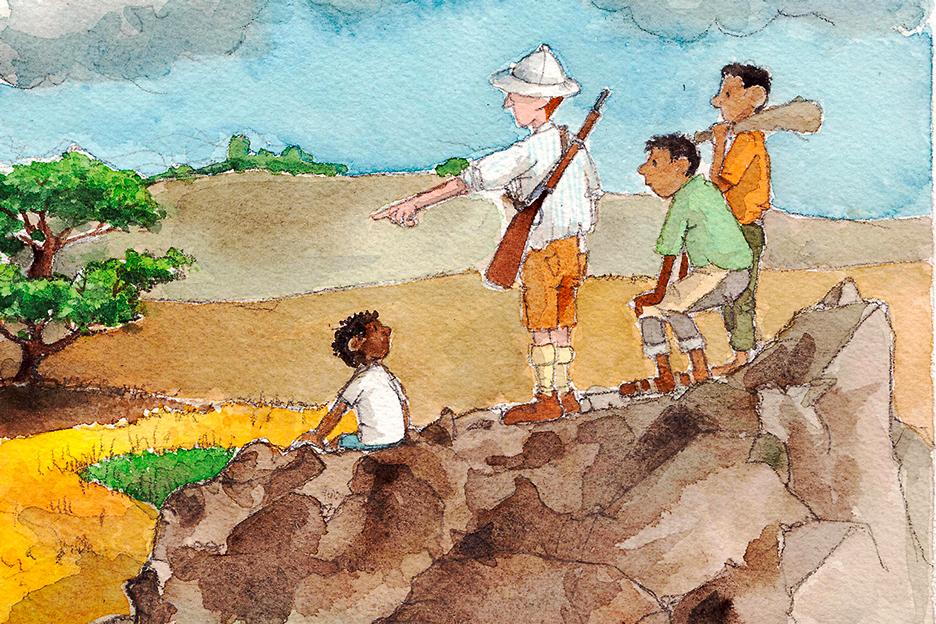 «Kah», rief Daudi, «vielleicht erschreckt deine kleine Kugel das Tier so, dass es lange genug still steht, und ich es mit diesem Messer töten kann.»