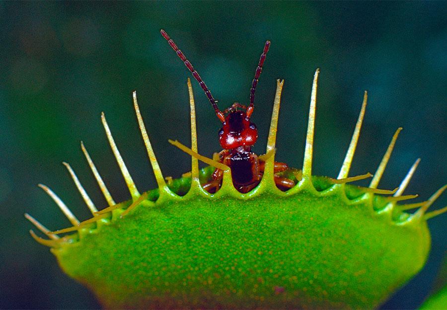 Die fleischfressende Venusfliegenfalle (Dionaea muscipula) ist eine wahre Wunderpflanze. Sie zählt, wie oft sie ein Insekt berührt, woraus sie wiederum den Aufwand für die Verdauung berechnet. Das haben Pflanzenwissenschaftler der Universität Würzburg entdeckt. Das Ganze bewerkstelligt die Pflanze mit ihren empfindlichen Blattspitzen, die zu tellerförmigen Fallen ausgebildet und mit Sensoren versehen sind. Damit kann sie Fliegen und andere Insekten erkennen, fangen und verdauen.
