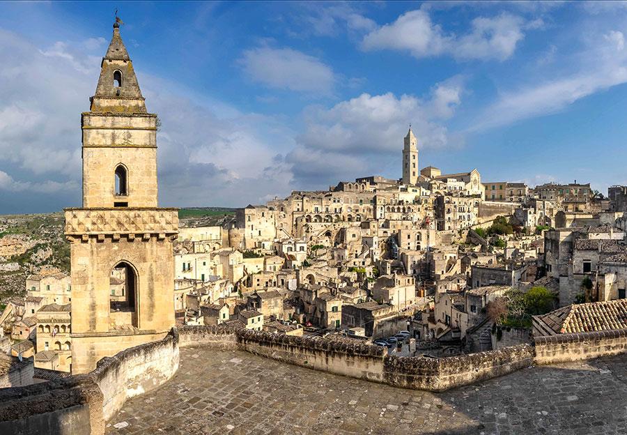 Was für eine Entwicklung! Erst noch stand die süditalienische Stadt als «nationale Schande» in Verruf, 1993 wurde sie «Unesco Weltkulturerbe» und 2019 zur «Kulturhauptstadt Europas» ernannt! Matera hat eine wechselvolle Geschichte hinter sich. Schon früh siedelten hier erste Nomaden. Sie fanden in dieser Gegend Nahrung, Wasser und in den natürlichen Tuffsteinhöhlen Schutz vor Unwettern und Feinden. Seitdem war Matera durchgängig bewohnt. Neben dem syrischen Aleppo gilt sie als eine der ältesten Städte der Welt. Berühmtheit erlangte Matera durch seine «Sassi». Diese altertümlichen, in Felsen gegrabenen Höhlensiedlungen dienten zum Teil bereits vor Tausenden Jahren als Wohnraum. Im Mittelalter baute man Häuser davor. Die Höhlen im weichen Tuffstein wurden ständig neuen Bedürfnissen angepasst. So blieben Spuren von früher, die auf unterschiedliche Nutzungen hinweisen. Oft waren die Höhlen Kirchen, dann Keller mit Wein und Ölpressen, bevor sie Familien als Herbergen dienten. Die Felder lagen weit ausserhalb, die Bauern lebten in der Stadt. So mussten sie oft stundenlange Arbeitswege auf ihren Mauleseln zurücklegen.